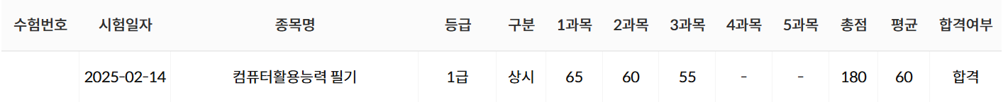 | [취준] 컴퓨터 활용 능력 1급 필기 탈락... (0) | 2025.02.11 |